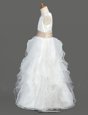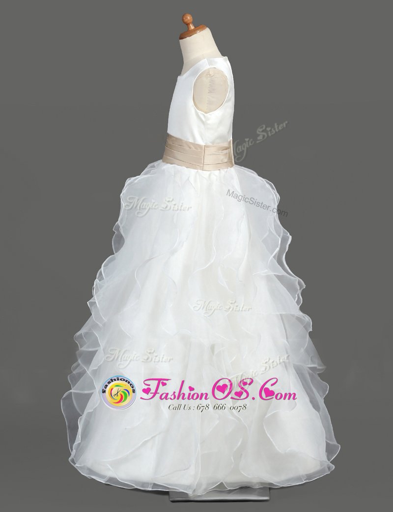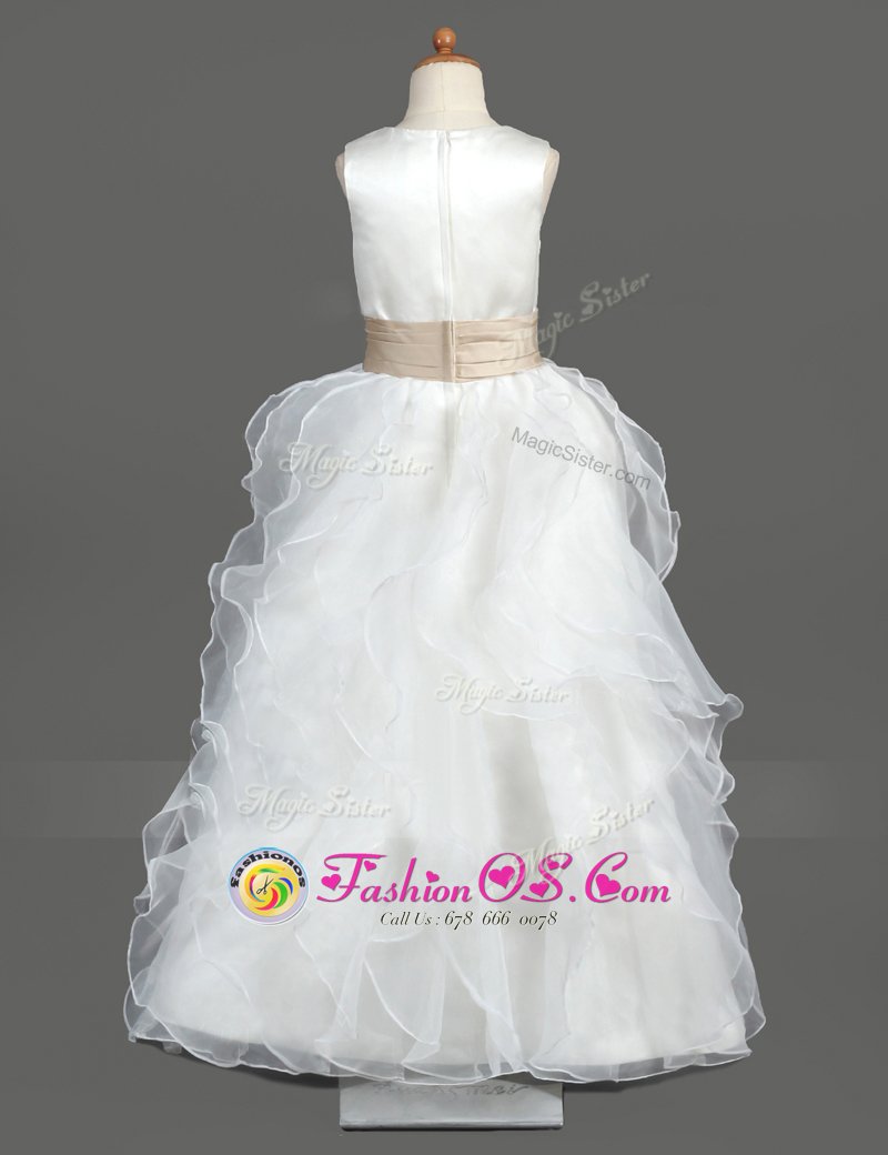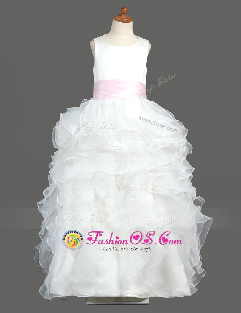 Ideal Scoop White Column/Sheath Ruffled Layers Flower Girl Dresses for Less Zipper Organza Sleeveless Floor Length