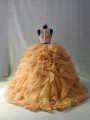 Home >  Quinceanera Dresses >  Discount Quinceanera Dresses > Ideal Sleeveless Brush Train Zipper Beading and Ruffles and Sequins Ball Gown Prom Dress