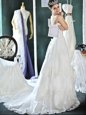 Home >  Wedding Dresses >  Affordable Wedding Dresses > Ideal Strapless Sleeveless Wedding Gown Mini Length Court Train Lace and Appliques White Lace