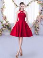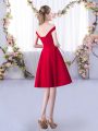 Ideal Straps Sleeveless Wedding Party Dress Knee Length Ruching Red Satin
