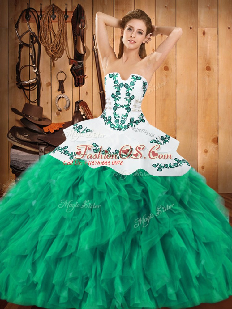 Ideal Turquoise Sleeveless Satin and Organza Lace Up Sweet 16 Quinceanera Dress for Military Ball and Sweet 16 and Quinceanera