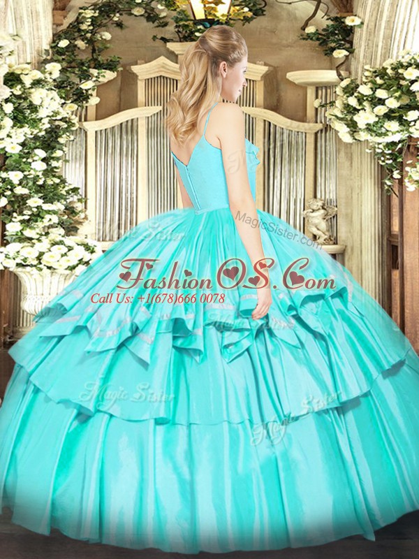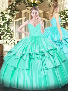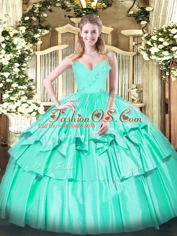 Ideal Turquoise Zipper 15th Birthday Dress Ruffled Layers Sleeveless Floor Length