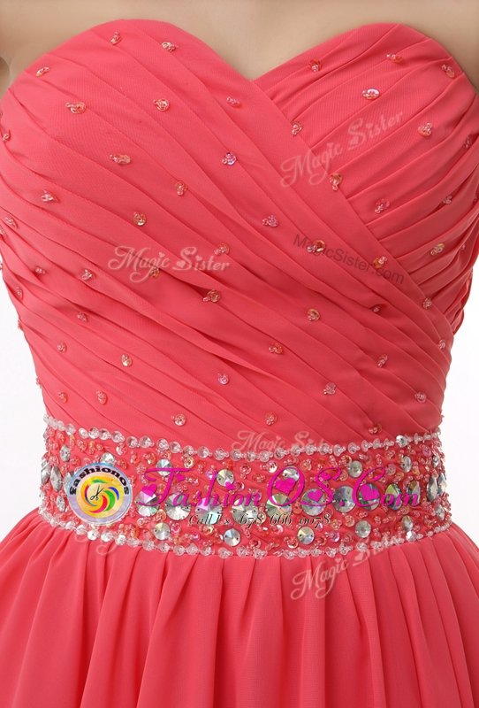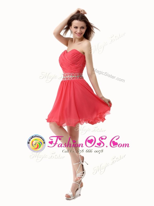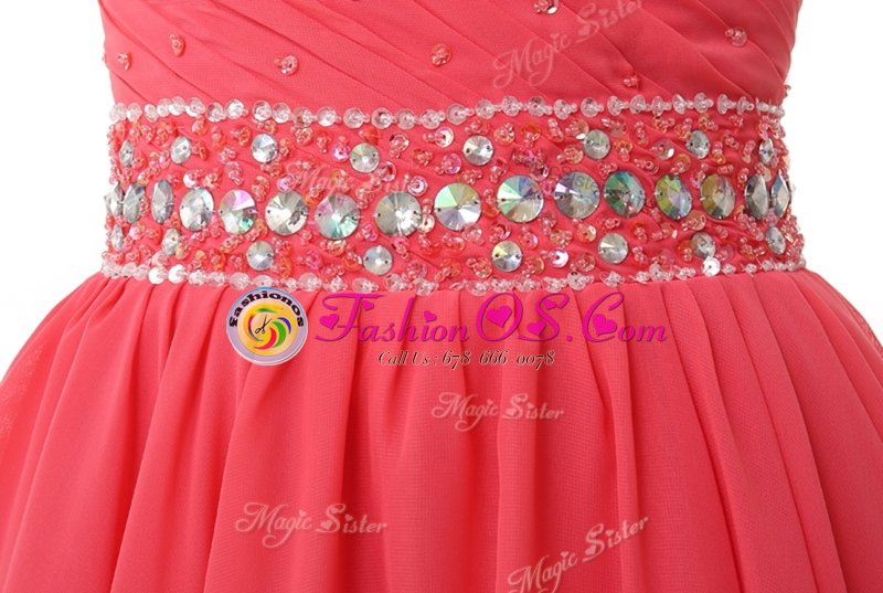 Home >  Special Occasion Dresses >  Homecoming Dresses > Ideal Watermelon Red Zipper Prom Homecoming Dress Beading and Ruching Sleeveless Mini Length