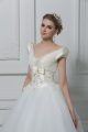 Home >  Wedding Dresses >  Wedding Dresses 2019 > Ideal White Ball Gowns V-neck Short Sleeves Tulle Floor Length Lace Up Beading and Appliques and Bowknot Wedding Dresses