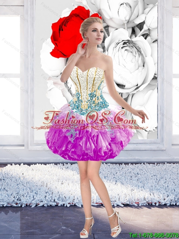 Inexpensive 2015 Mini Length Beaded Prom Dresses with Appliques