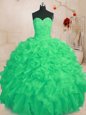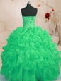 Inexpensive Baby Blue Sleeveless Floor Length Beading and Ruffles Zipper 15th Birthday Dress
