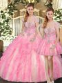 Home >  Quinceanera Dresses >  Detachable Quinceanera Skirts > Inexpensive Baby Pink Strapless Lace Up Beading and Ruffles 15 Quinceanera Dress Sleeveless