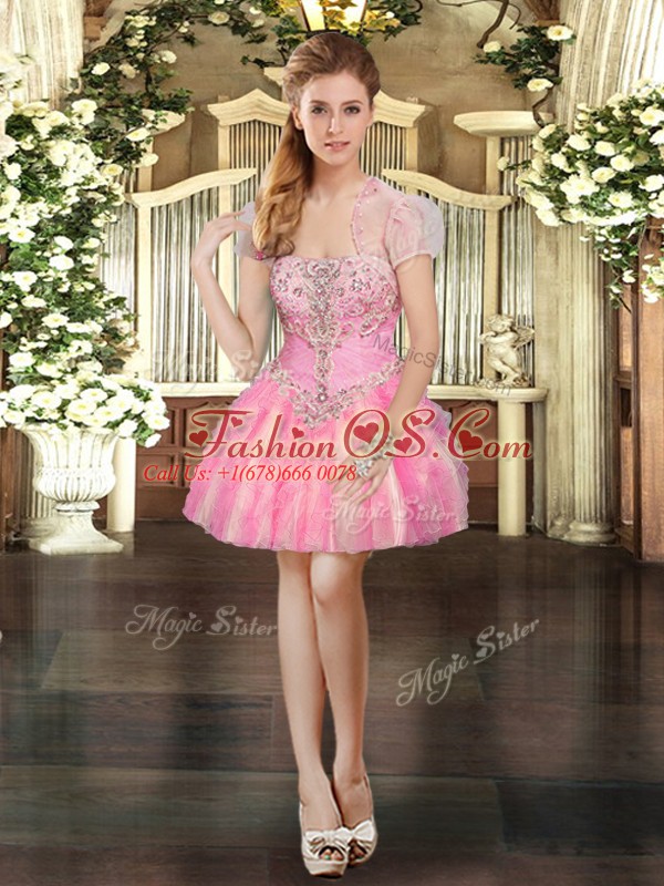 Inexpensive Baby Pink Strapless Lace Up Beading and Ruffles 15 Quinceanera Dress Sleeveless