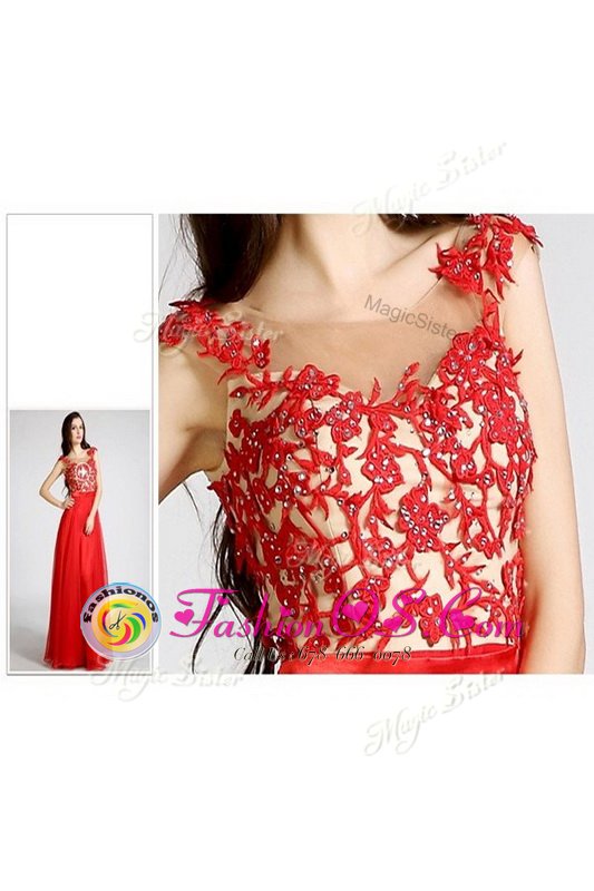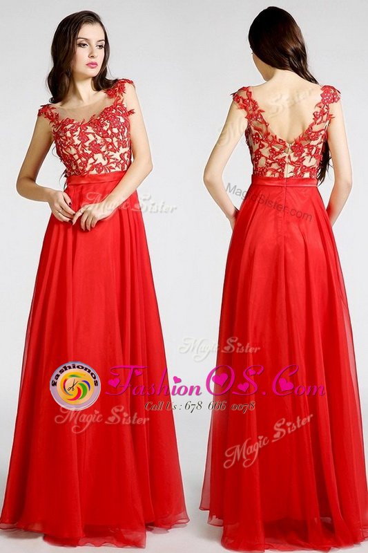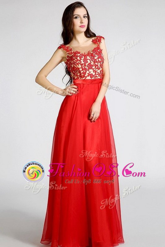 Home >  Prom Dresses >  Perfect Prom Dresses > Inexpensive Bateau Sleeveless Zipper Evening Dress Red Chiffon