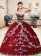 Inexpensive Beaded and Applique Quinceanera Dress in Wine Red