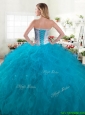 Inexpensive Beaded and Ruffled Big Puffy Quinceanera Dress in Teal