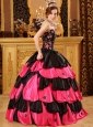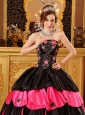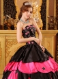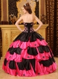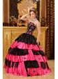 Home >  Quinceanera Dresses >  Unique Quinceanera Dresses > Inexpensive Black and Hot Pink Quinceanera Dress Strapless Taffeta Beading Ball Gown