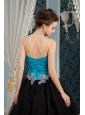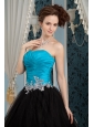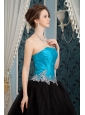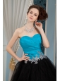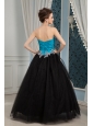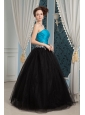 Inexpensive Blue and Black Prom Dress A-line Sweetheart Beading Floor-length Organza and Tulle