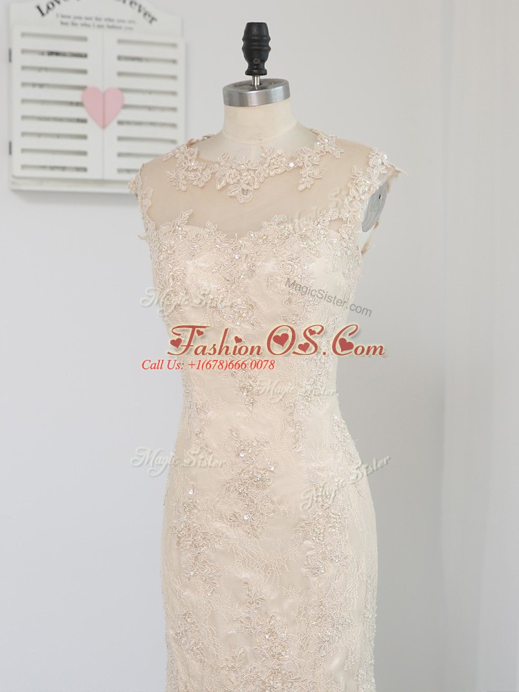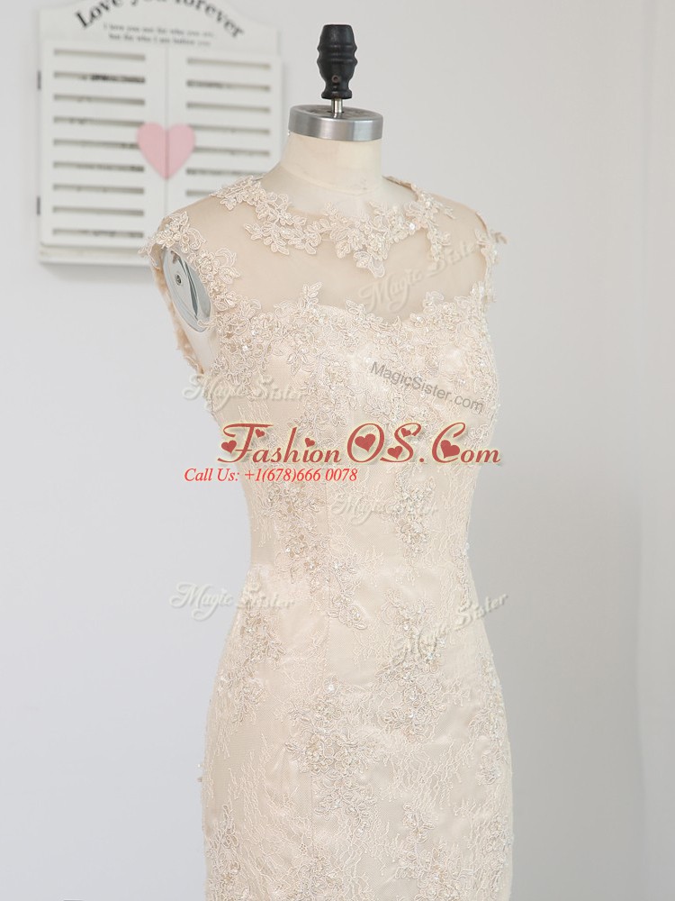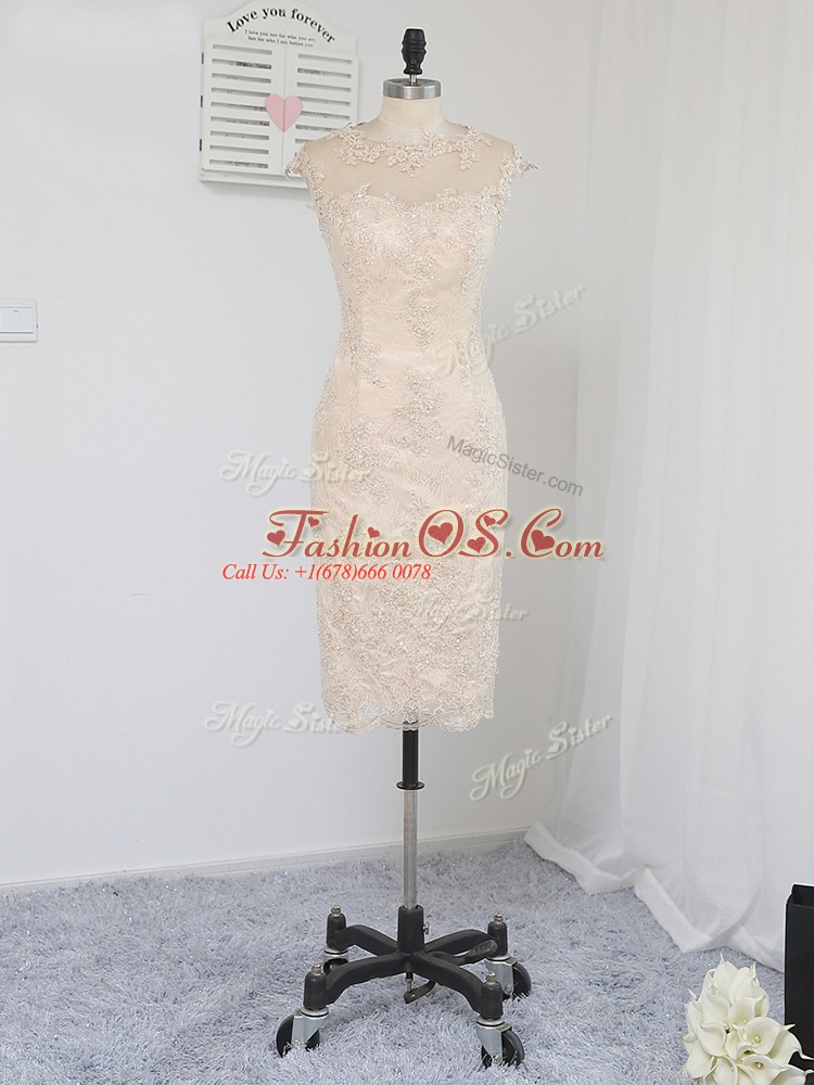 Inexpensive Champagne Scoop Neckline Lace and Appliques Mother Of The Bride Dress Sleeveless Zipper
