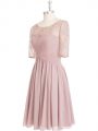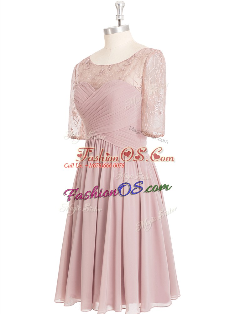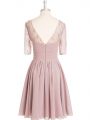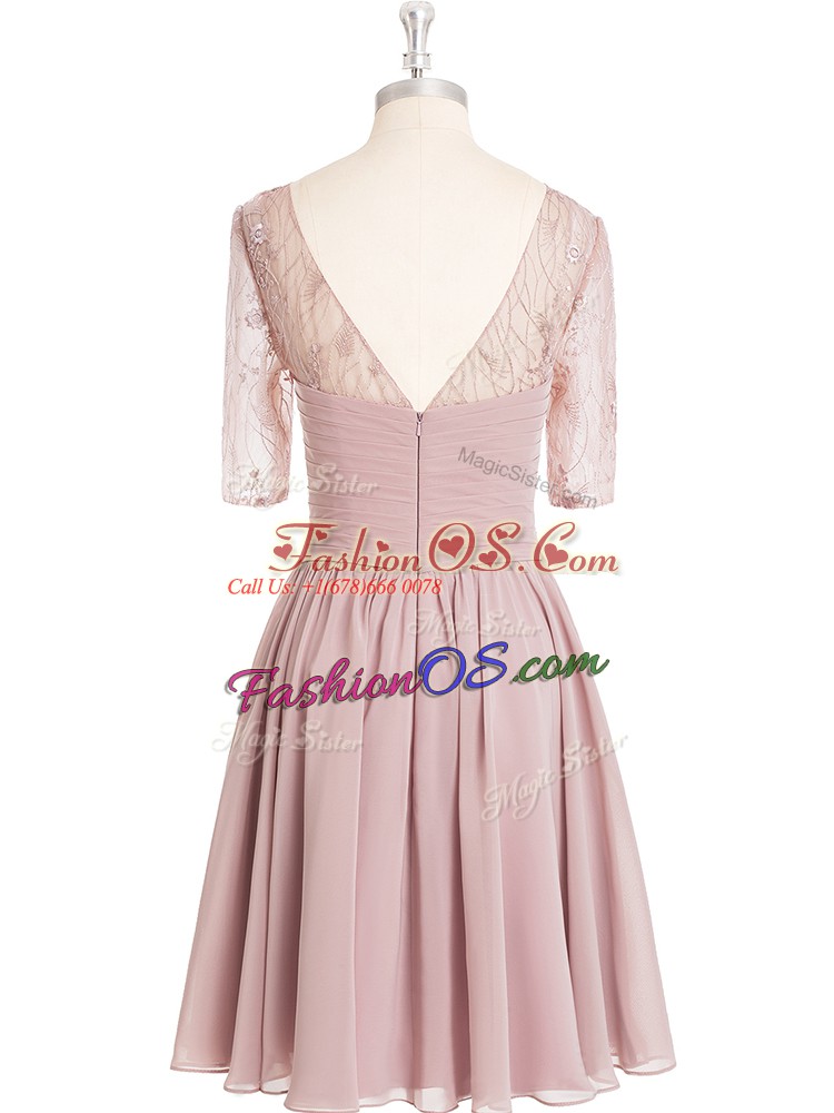 Inexpensive Chiffon Half Sleeves Knee Length Prom Party Dress and Lace and Ruching