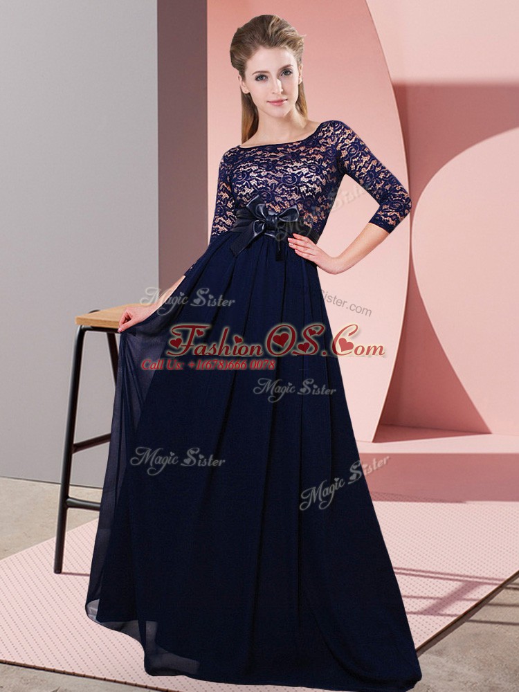Inexpensive Chiffon Scoop 3 4 Length Sleeve Side Zipper Lace and Belt Quinceanera Court Dresses in Black