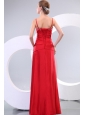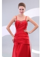 Home >  Prom Dresses >  Modest Prom Dresses > Inexpensive Column Straps Floor-length Beading and Ruching Lace Up Prom Dress in Red