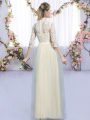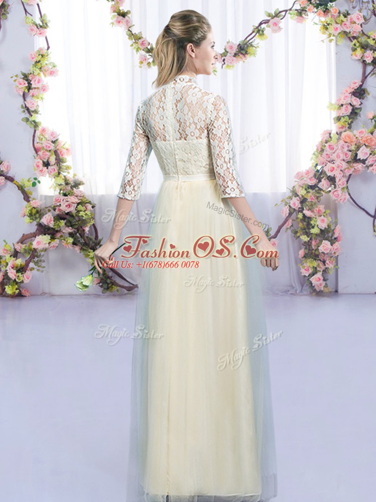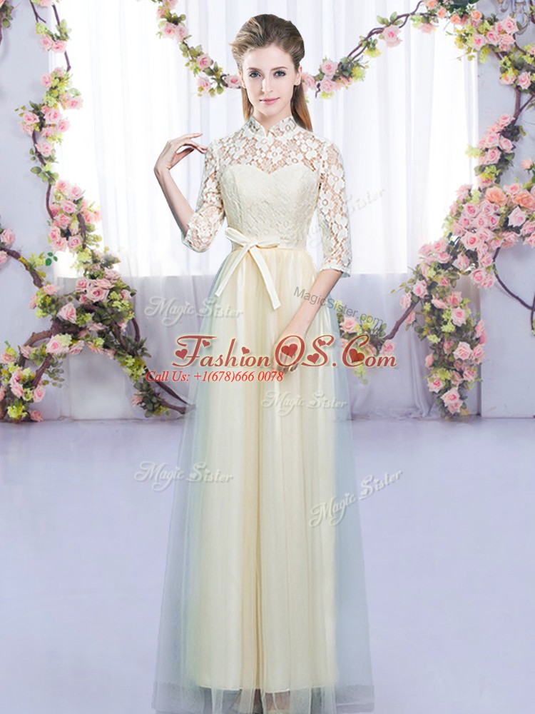 Inexpensive Empire Quinceanera Court Dresses Champagne High-neck Tulle Half Sleeves Floor Length Zipper
