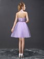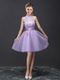 Inexpensive Halter Top Organza Sleeveless Mini Length Bridesmaid Gown and Lace and Belt