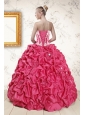 Inexpensive Hot Pink Dresses for Quince with Pick Ups and Appliques