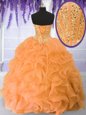 Inexpensive Light Blue Ball Gowns Sweetheart Sleeveless Organza Floor Length Lace Up Beading and Ruffles Quinceanera Dresses
