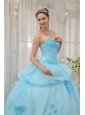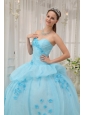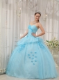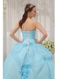 Home >  Quinceanera Dresses >  Sweet 16 Dresses > Inexpensive Light Blue Sweet 16 Dress Sweetheart Organza Appliques Ball Gown