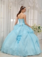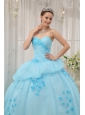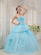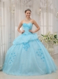 Home >  Shop By Color >  Quinceanera Dresses by Color >  Light Blue Quinceanera Dresses > Inexpensive Light Blue Sweet 16 Dress Sweetheart Organza Appliques Ball Gown