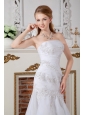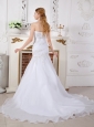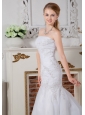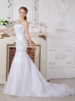 Home >  Wedding Dresses >  Popular Wedding Dresses > Inexpensive Mermaid Strapless Appliques Wedding Dress Brush Train Chiffon