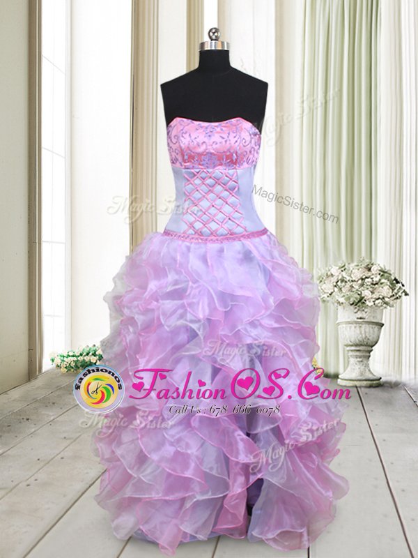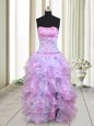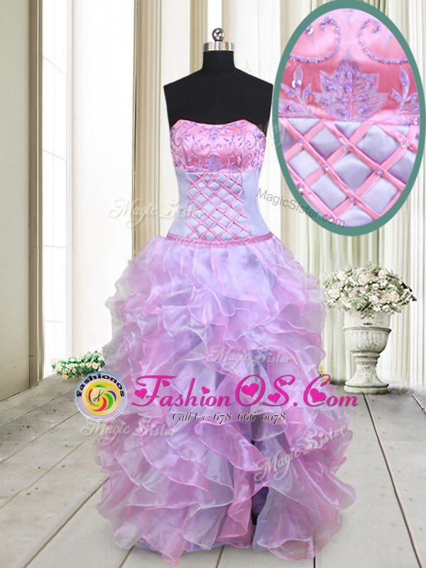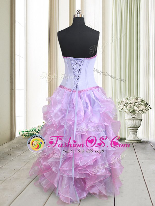 Inexpensive Multi-color Organza Lace Up Strapless Sleeveless Floor Length Prom Dress Beading and Ruffles