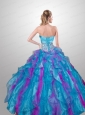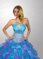 Inexpensive Multi-color Quinceanera Dress with Ruffled Layers and Beading