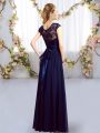 Home >  Bridesmaid Dresses >  Perfect Bridesmaid Dresses > Inexpensive Navy Blue Empire Scoop Cap Sleeves Chiffon Floor Length Zipper Lace and Belt Bridesmaid Dresses