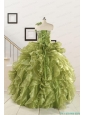 Inexpensive Olive Green Dresses for Quince with Beading and Ruffles