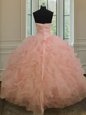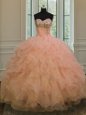 Inexpensive Peach Sleeveless Floor Length Beading and Ruffles Lace Up Ball Gown Prom Dress