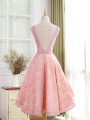 Home >  Evening Dresses > Inexpensive Pink Backless Womens Evening Dresses Lace and Appliques Sleeveless High Low