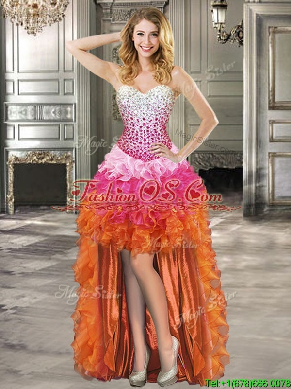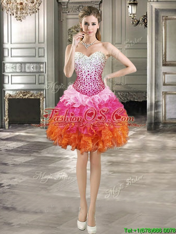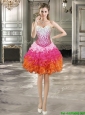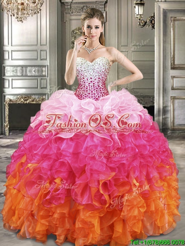 Inexpensive Rainbow Organza Detachable Quinceanera Dresses with Beading and Ruffles