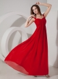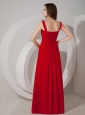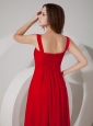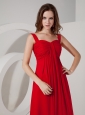 Inexpensive Red Empire Straps Prom Dress Chiffon Ruch Floor-length