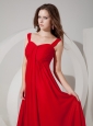 Home >  Prom Dresses >  Cheap Prom Dresses > Inexpensive Red Empire Straps Prom Dress Chiffon Ruch Floor-length