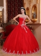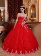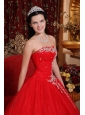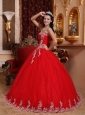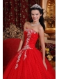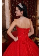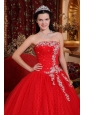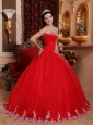 Home >  Quinceanera Dresses >  Perfect Quinceanera Dresses > Inexpensive Red Quinceanera Dress Strapless Tulle Lace Appliques Ball Gown