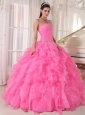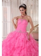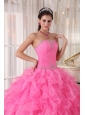 Home >  Quinceanera Dresses >  Perfect Quinceanera Dresses > Inexpensive Rose Pink Quinceanera Dress Strapless Organza Beading Ball Gown