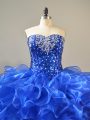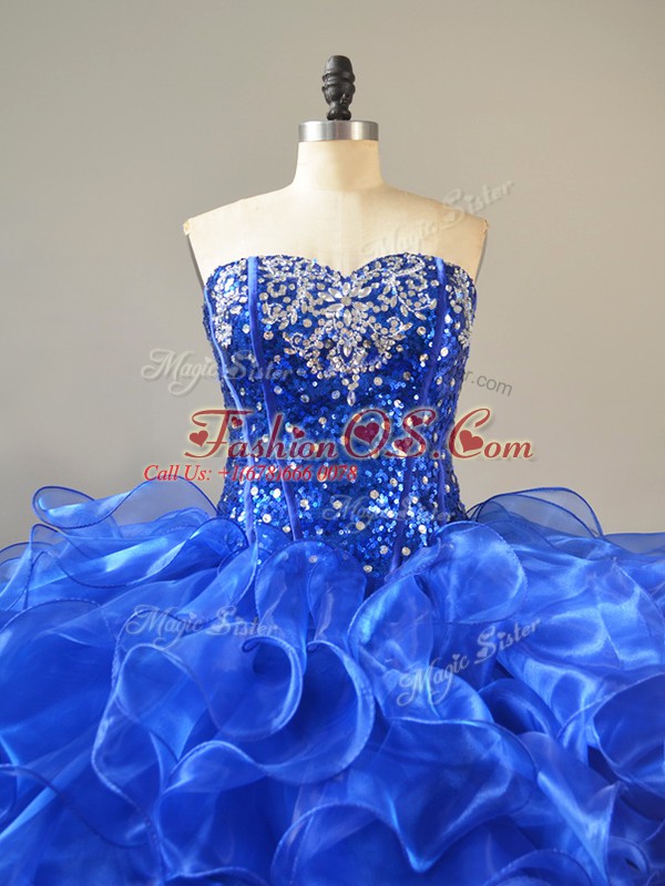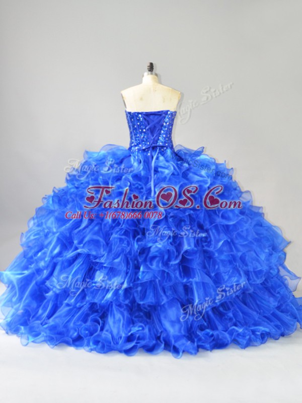 Inexpensive Royal Blue Lace Up Sweet 16 Dresses Beading and Ruffles Sleeveless