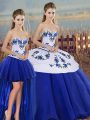 Inexpensive Royal Blue Three Pieces Tulle Sweetheart Sleeveless Embroidery and Bowknot Floor Length Lace Up Quinceanera Gowns