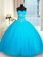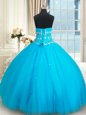 Inexpensive Scoop Floor Length Lace Up Sweet 16 Dresses Lavender and In for Military Ball and Sweet 16 and Quinceanera with Beading and Ruffles