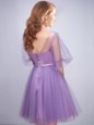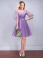 Inexpensive Scoop Half Sleeves Tulle Vestidos de Damas Appliques and Ruching and Belt Lace Up