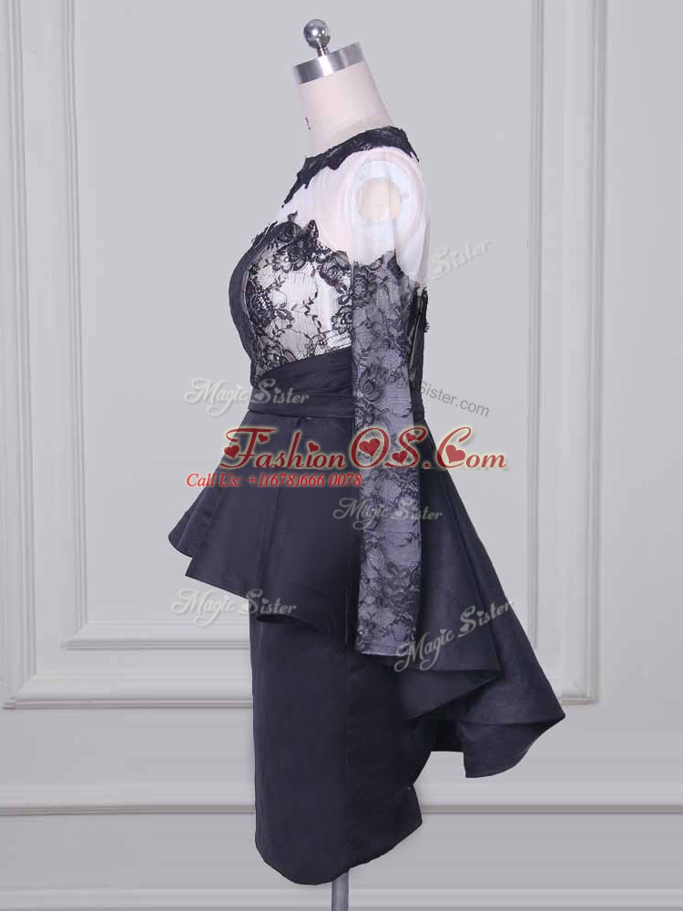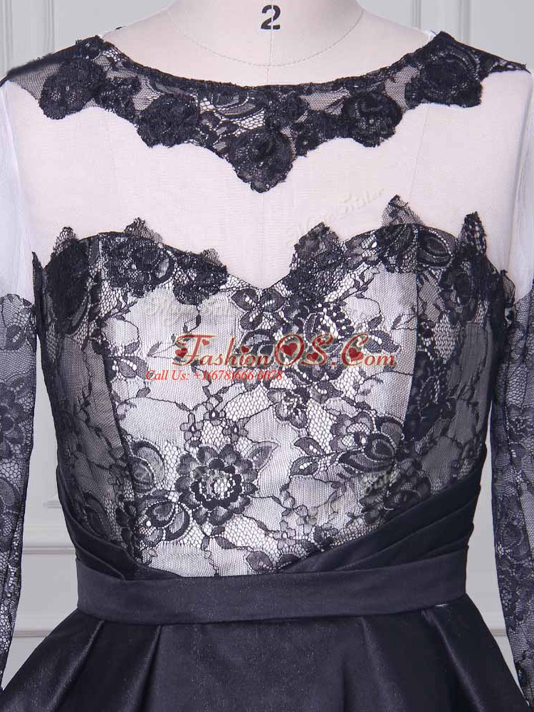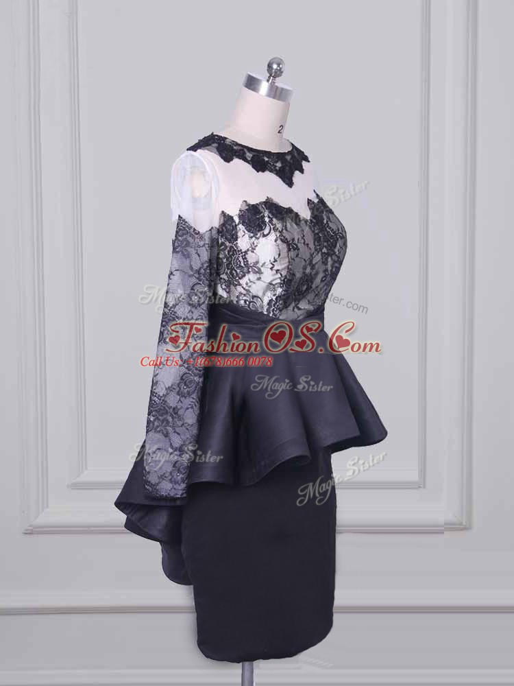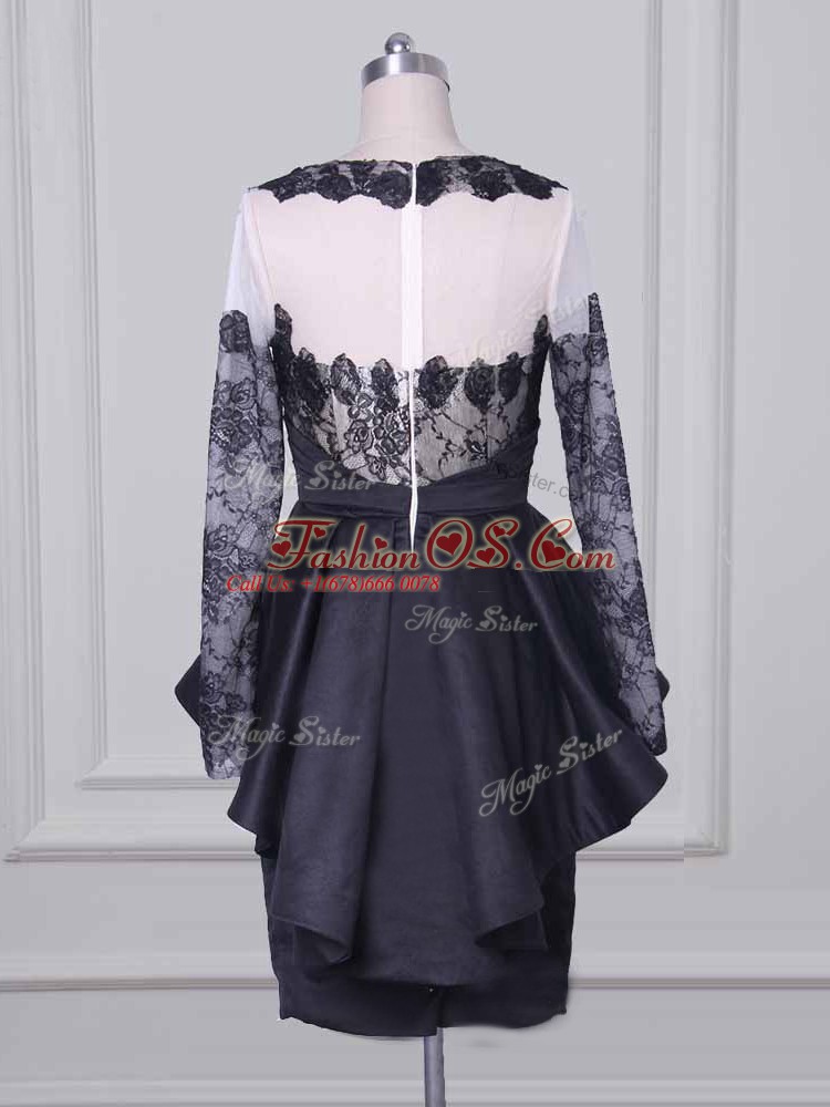 Inexpensive Scoop Long Sleeves Zipper Mother Of The Bride Dress Black Satin