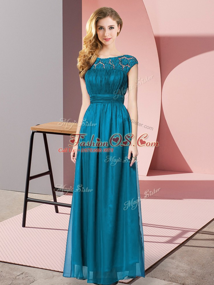 Inexpensive Scoop Sleeveless Zipper Prom Evening Gown Teal Tulle