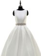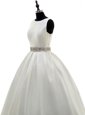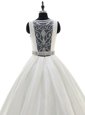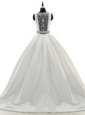 Inexpensive Scoop White Sleeveless With Train Beading Zipper Bridal Gown