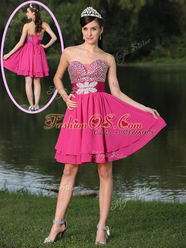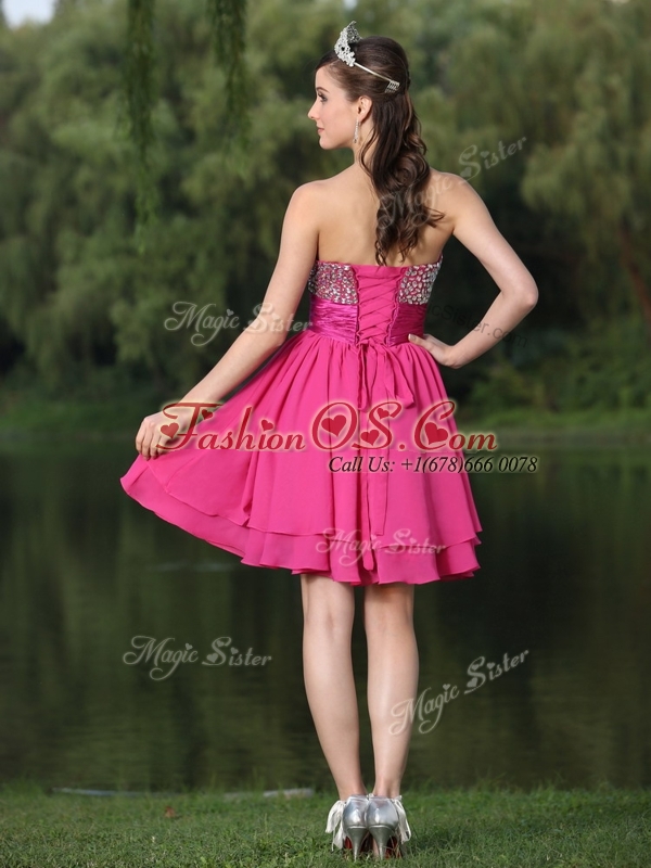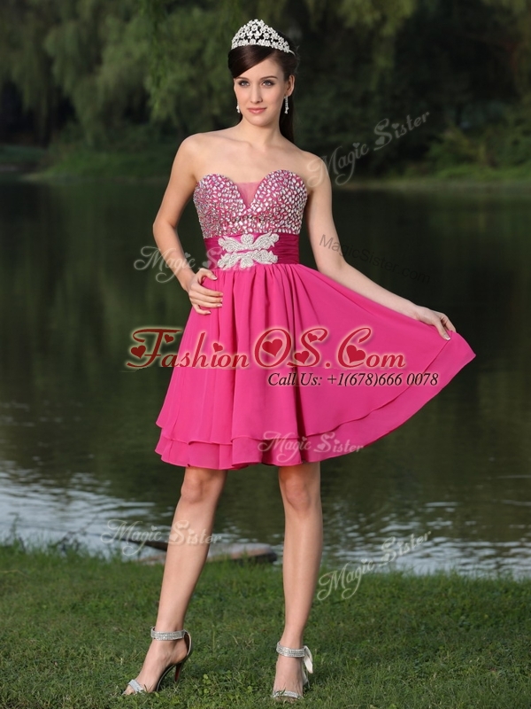 Inexpensive Short Sweetheart Beading Cocktail Dresses in Hot Pink