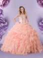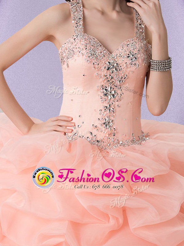 Inexpensive Straps Pick Ups Floor Length Ball Gowns Sleeveless Peach 15th Birthday Dress Zipper