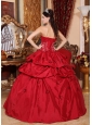 Home >  Quinceanera Dresses >  15 Quinceanera Dresses > Inexpensive Wine Red Quinceanera Dress Strapless Taffeta Appliques Ball Gown