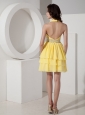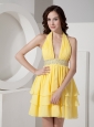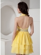 Inexpensive Yellow Empire Cocktail Dress Halter Chiffon Beading Mini-length